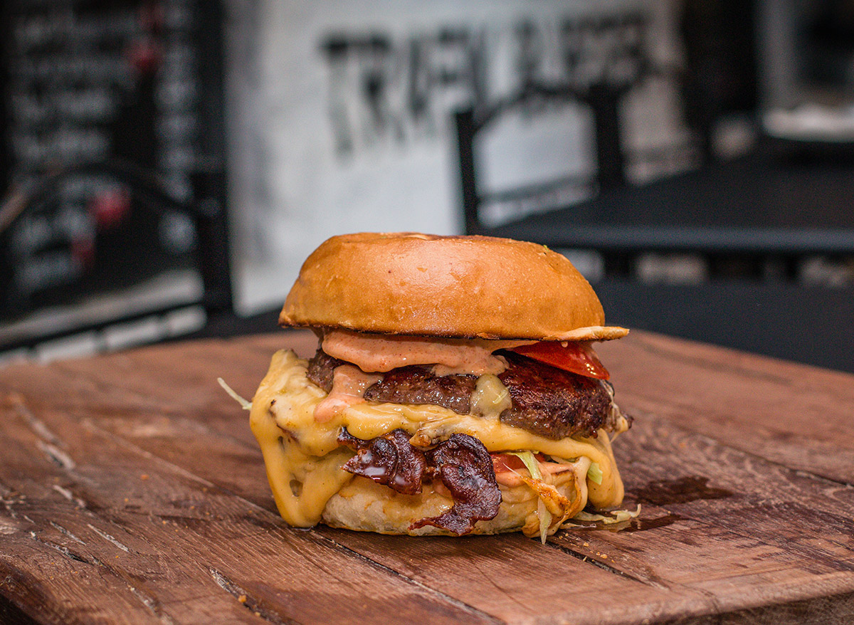 Bacon, BUCI, Cheddar Sajt, Házi szósz , HÚSpogácsa, Jégsaláta, Paradicsom