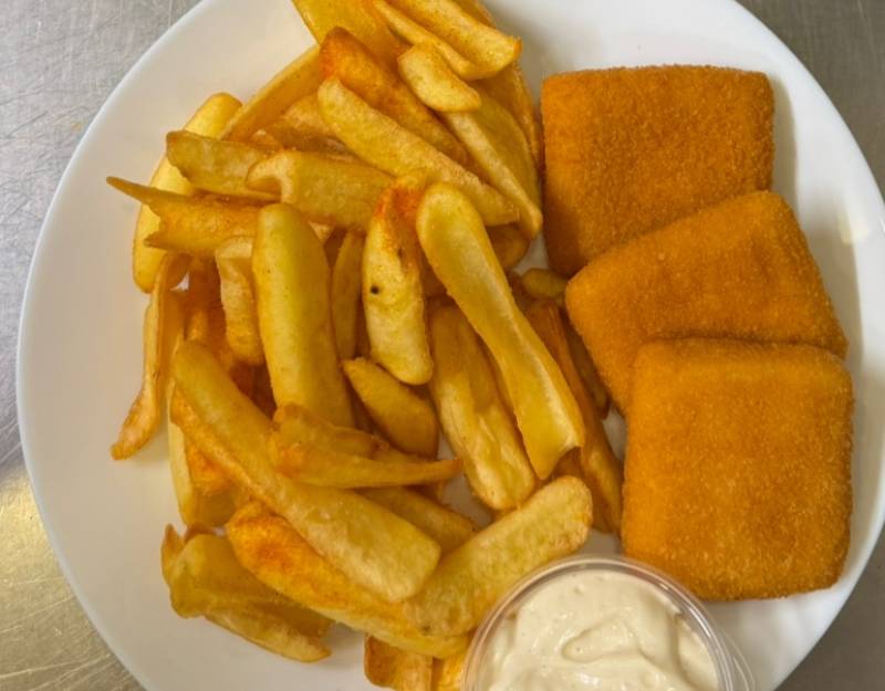 Édes burgonya, Házi szósz , HÚSpogácsa, Káposzta saláta, Rántott csirke, Rántottsajt, Sültkrumpli