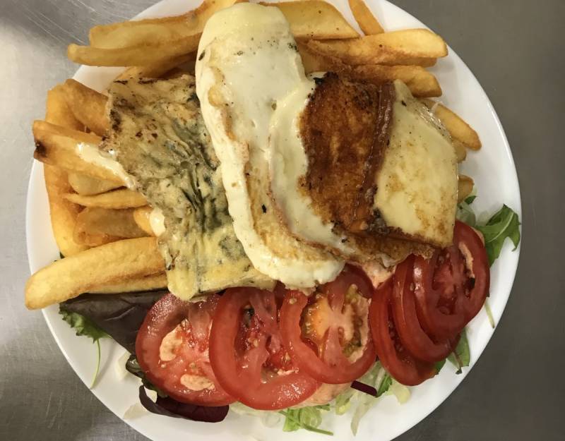 Fokhagymás majonézes szósz, Füstölt sajt , Házi szósz , Jégsaláta, Kecskesajt, Kéksajt, Mozzarella, Paradicsom, Sültkrumpli